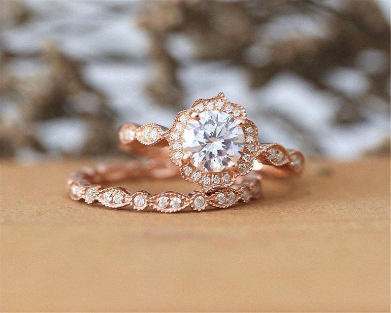 2 CT Round Cut Cubic Zirconia Engagement Ring, Lab Created Halo Wedding Ring For Bridal, Solid Gold Promise Ring Gift For Her, Proposal Ring