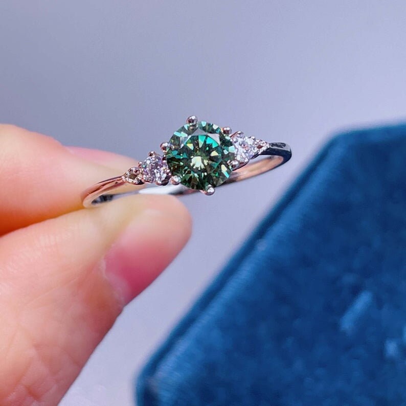 Green CZ Ring, Solatire Round Cut silver CZ Ring,Sterling Silver Ring,Custom Engraved Silver Band,Anniversary Ring for woman,Valentine Gift