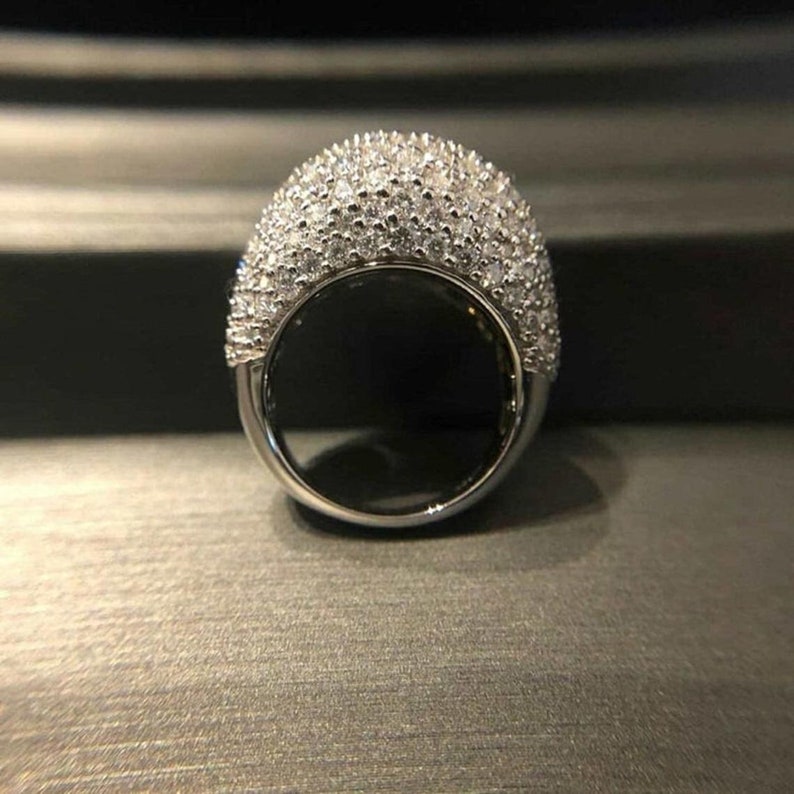 Round Cut Cubic Zirconia Diamond Engagement Ring, White Simulated Diamond Halo Proposal Ring For Her, Silver Wedding Ring For Her